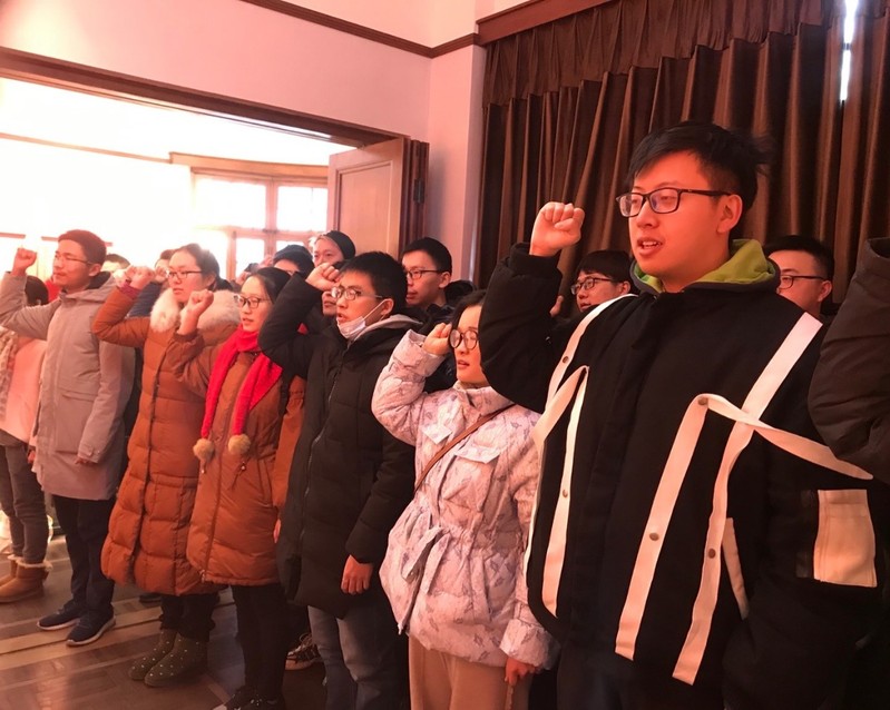 值中国共产党建党百年之际,为进一步用红色基因铸魂育人,激励师生传承宣言精神,品色堂 于2021年1月7日下午在共产党宣言展示馆举行简朴而庄重的师生党员入党宣誓仪式。宣誓仪式由品色堂 党委副书记王珏主持,党委书记于瀛、专职辅导员韩画宇出席,2020年下半年新发展的1名教师党员和20名学生党员参加仪式。