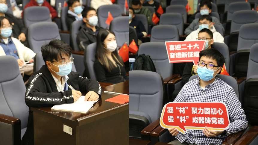 党委高度重视,精心组织全体师生党员,通过线上和线下相结合的形式观看开幕会。系党委中心组、教职工支部书记和支委、学生支部书记和支委,以及学生党员代表等,分别在江湾校区先进材料楼221会议室、一楼报告厅、各课题组办公室进行集中学习。系师生同时在住所、宿舍等地同步收看党的二十大开幕会直播,共同学习习近平总书记的报告。