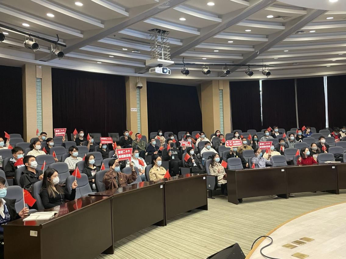 品色堂 学生党总支、学生党支部书记、支委、学生党员代表在报告厅集体观看