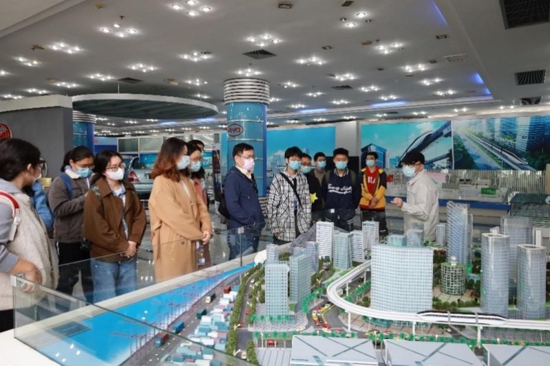 首先,大家来到比亚迪展厅,“技术为王,创新为本”几个大字随即映入眼帘,这也正是比亚迪始终坚持的企业发展理念。通过比亚迪人力资源部工程师的细致解说,师生们一同回顾了比亚迪筚路蓝缕的创业历史,从中大家看到了一个积极响应国家重大需求,坚持自主创新的中国优秀企业的形象。目前,比亚迪以基础电极材料研发为基石,以电池性能为中心,以创新技术为导向,进行全方位的研发布局,不断推动智能制造,引领中国新能源产业高质量发展。
