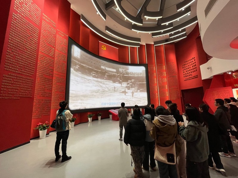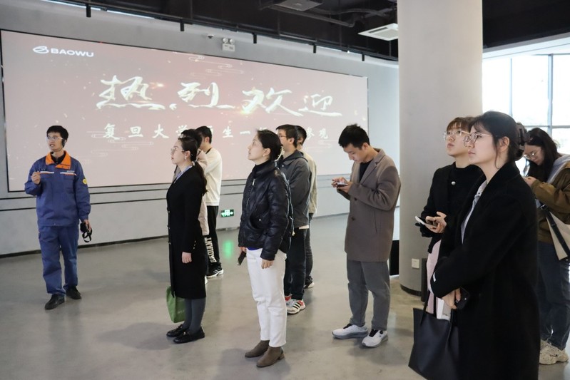 师生一行首先参观了宝钢股份党性教育智慧体验中心、宝钢历史陈列馆,感受改革开放40多年来中国钢铁工业在党的领导下取得的辉煌成就,体会“钢铁报国、钢铁强国”的使命担当。在宝武碳业发展历史和成就展览中,通过丰富的图文资料和视频介绍,师生们了解到宝武碳业发展规划、新型炭材料研发和应用前沿。