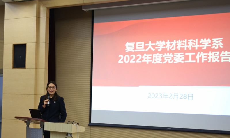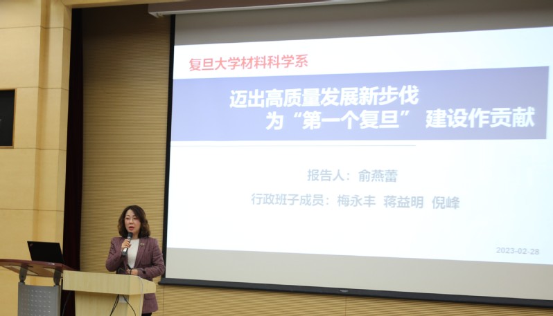 系主任俞燕蕾以“迈出高质量发展新步伐,为‘第一个复旦’建设作贡献”为主题介绍了2022年品色堂 在各方面工作中取得的突破性进展。材料物理获评国家一流本科专业,课程思政和精品教材建设取得一系列重要成果,产学研联动建设创新创业基地,有效推进学科拔尖创新人才分层次多元化培养;加强导师关心关爱,促进毕业生到祖国最需要的地方和岗位就业,本研升学及就业率达到98%。紧密围绕“大人才”战略部署,打造人才成长沃土,精心筹划举办“领航成材”咖香面对面、首届教学创新大赛等活动,助力青年教师成长成才,国家和上海市各类人才辈出。以服务国家战略和地方需求为目标,坚持四个面向,推动开展有组织的科研,深化学科交叉融合,提升协同创新能力,重大重点项目立项及人均经费创历史新高。俞燕蕾结合学校春季工作会议精神,提出了2023年我系发展面临的挑战与思考。她指出2023年是“十四五”规划实施的关键之年,全系师生要继续凝心聚力,贯彻落实党的二十大关于教育、科技、人才“三位一体”的统筹部署,为建设“第一个复旦”努力奋斗。