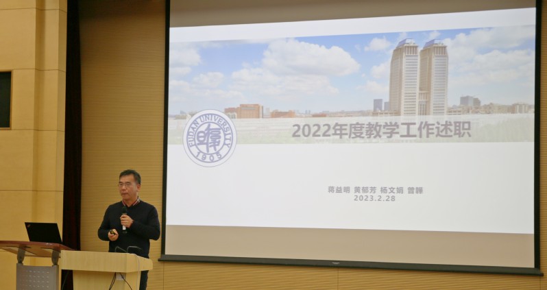 党委书记于瀛首先作党委年度工作报告。2022年,在校党委的正确领导下,系党委深入学习贯彻习近平新时代中国特色社会主义思想和党的二十大精神,认真落实校党委的各项工作部署,坚持立德树人根本任务不动摇,充分发挥党建引领和保障作用,充分发挥党支部的战斗堡垒和党员教师的先锋模范作用,打赢疫情防控攻坚战。全体师生凝心聚力,锐意进取,教学科研再上新台阶,师资队伍建设成效显著,人才培养质量稳步提升,服务保障坚实有力,推进了系内各项事业的蓬勃发展。于瀛强调,2023年是加快高质量发展的关键之年,全体教师要统一思想,团结一心,踔厉奋发,提质增效,为建设“第一个复旦”努力奋斗!