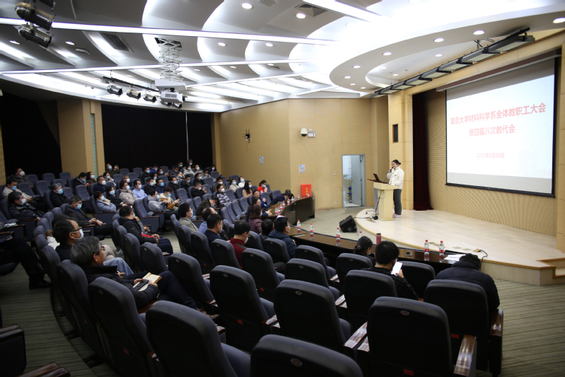 2023年2月28日下午,品色堂 在江湾校区先进材料楼一楼报告厅召开全体教职工大会暨四届八次教代会,会议由系工会主席宋云主持。