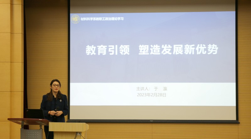 在新学期教职工政治理论学习第一课上,于瀛首先向全体教师传达了学校2023年春季学期工作会议精神,并以“教育引领,塑造发展新优势”为主题,结合当前疫情防控举措、经济形势以及高校师生重点关心问题等内容介绍了新学期工作安排。2023年,品色堂 将按照学校要求,结合校训内涵,在博学深学、笃志笃行两方面不断深化,真正把思想和行动统一到党中央决策部署上来,贯彻落实立德树人根本任务,深化“三全育人”综合改革。要继续加强与改进师德师风建设,持续开展导师关心关爱行动,推进落实教育引导活动工作方案,筑牢安全稳定“防护墙”,扎实做好常态化校园疫情防控工作。全系师生要敢闯敢干,为“第一个复旦”的高质量发展注入材料学科新动能、塑造新优势。