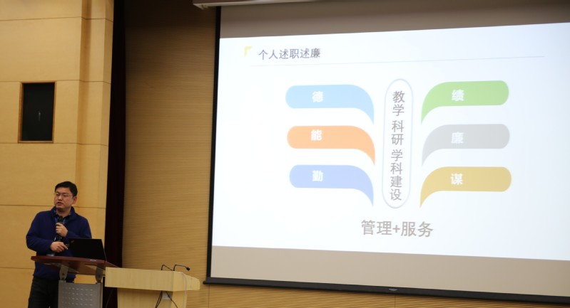 随后,系党政领导班子成员结合分管工作进行述职述廉和年度工作总结。系教学副主任蒋益明结合教学管理、本研招生等重点工作详细介绍了本年度教学工作安排;系科研副主任梅永丰从科研平台、地方研究院等方面对推进科研合作交流作了介绍;系行政副主任倪峰作2022年度财务工作报告并对系内管理服务成效作了总结。