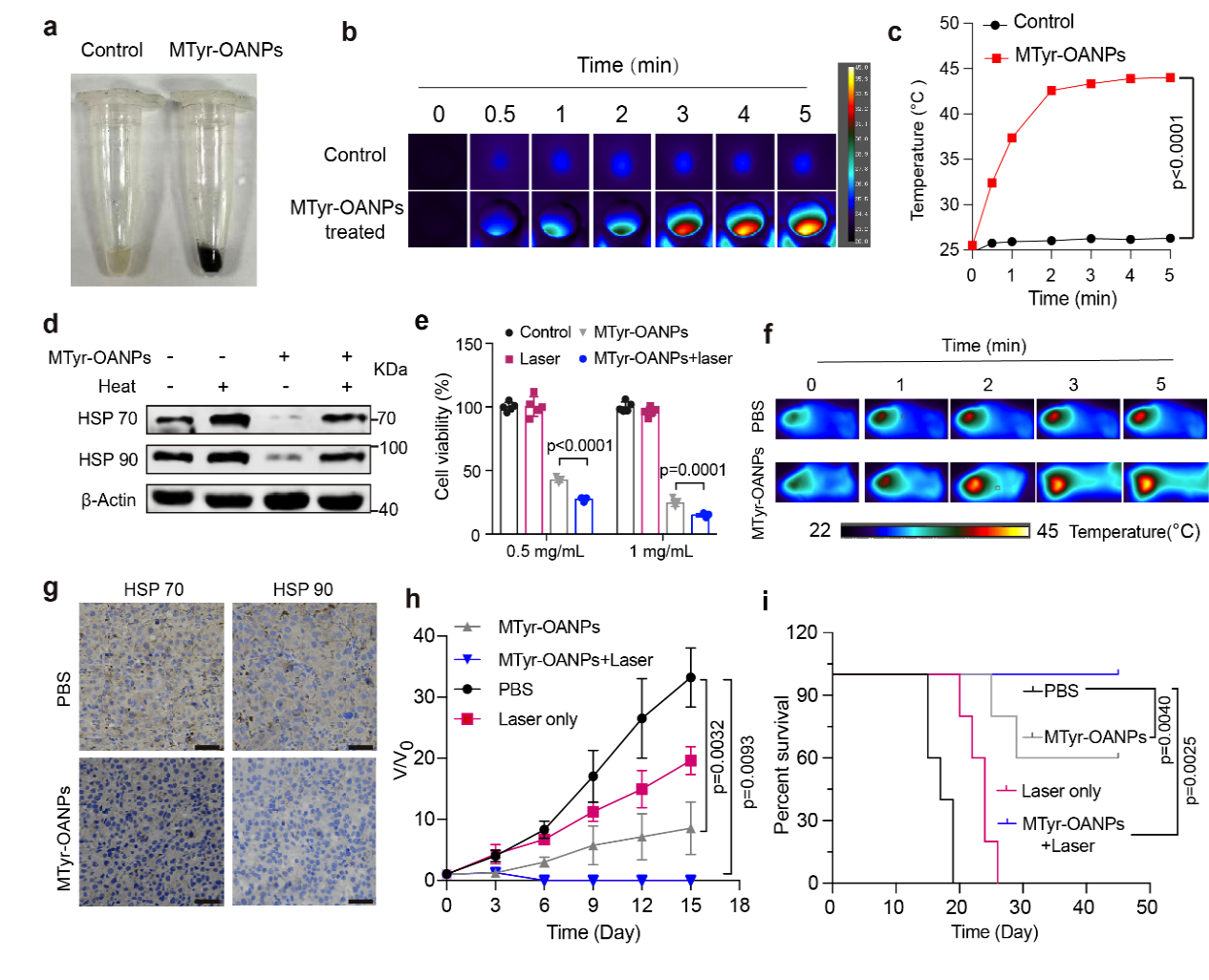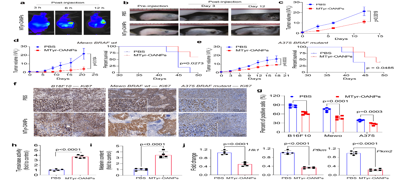 图5. MTyr-OANPs 在小鼠体内的抗肿瘤活性