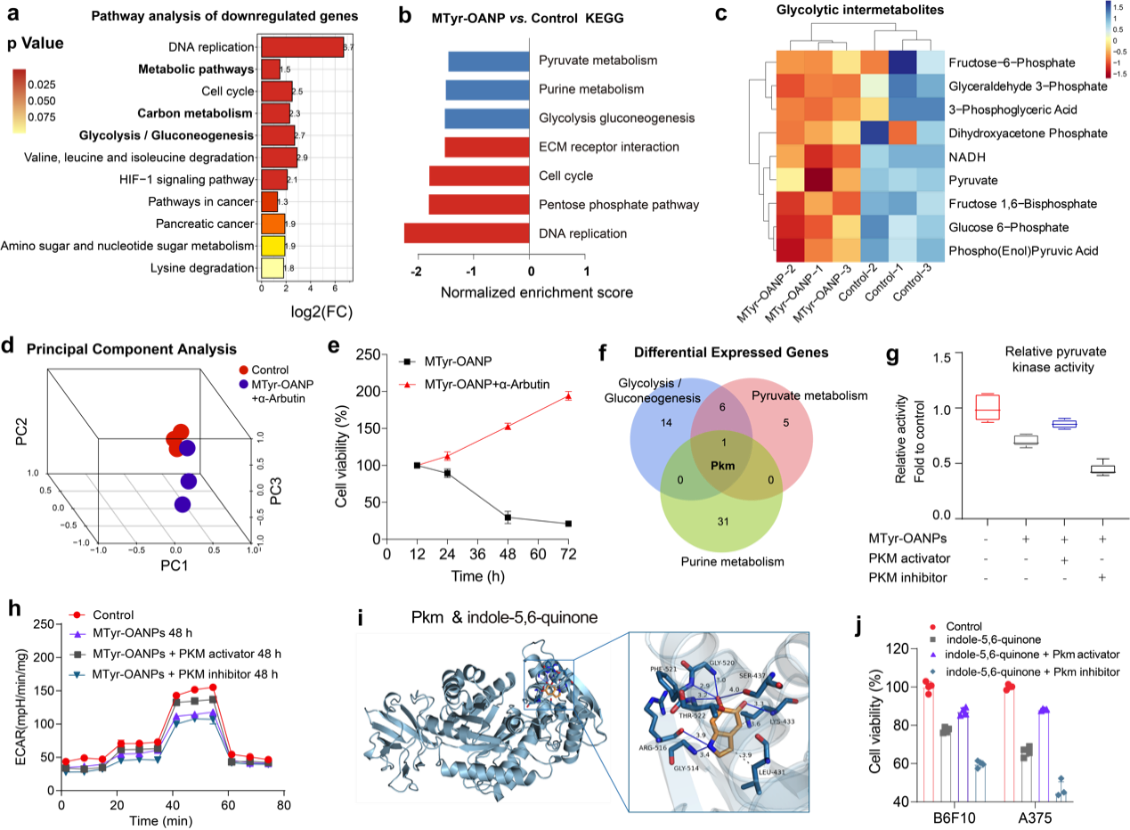 图4. MTyr-OANPs激活黑色素合成与抑制黑色素瘤细胞增殖的机制分析