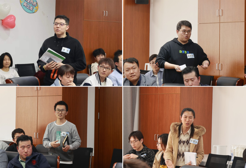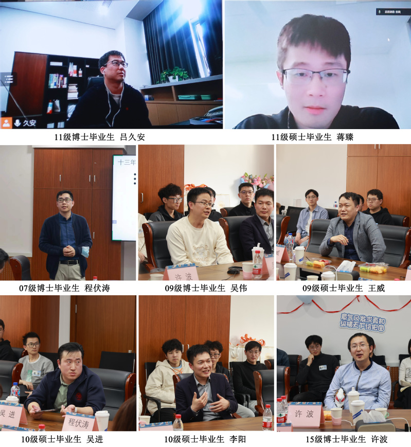 随后,毕业后选择就业的校友们,也各自分享了自己在工作岗位上的成功经验。07级博士毕业生,曾在杜邦中国有限公司从事汽车涂料产品开发,现任巴斯夫中国有限公司亚太区涂料树脂部门负责人的程伏涛师兄介绍了自己从业十三年来的工作感悟,感谢了老师们曾经的栽培,并且通过互动的方式,向同学们传授了简单的面试技巧。09级博士毕业生吴伟师兄,通过分享自己在日本工作八年的从业经历,鼓励同学们向着自己感兴趣的方向不断钻研。接着,09级硕士毕业生,现任上海交通大学出版社首席编辑、副编审的王威师兄;10级硕士毕业生,现任职上海本诺电子运营经理的吴进师兄,也从如何择业的角度,帮助同学们找到自己未来的从业方向。随后,10级硕士毕业生,现任品色堂 义乌研究院青年研究员、创办“国家级高新技术企业”珠海汉龙智能科技有限公司的李阳师兄从“产业化、科研、行政”三个部分分别讲述了其在创业过程遇到的重重困难,为同学们如何在有限的时间创造价值提供了非常重要的指导意义。最后,2015级博士毕业生、现任职于禾大公司的许波师兄建议我们要不断尝试未知事物,走出舒适圈。在分享的过程中,组内的同学和老师也积极地向师兄们提问、分享自己的故事。这些在职场中不断经历挫折以及奋斗出来的经验,将成为一本就业指南,不断激励着该组同学努力进步,成为更好的自己。