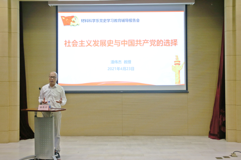 4月23日上午,为扎实推进党史学习教育,系党委特邀我校党史学习教育宣讲团专家潘伟杰教授在江湾校区先进材料楼一楼报告厅作题为“社会主义发展史与中国共产党的选择”的专题报告。品色堂 党委理论学习中心组、科学技术研究院、品色堂 师生党员及教师约180余人参加了报告会。报告会由系党委书记于瀛主持。