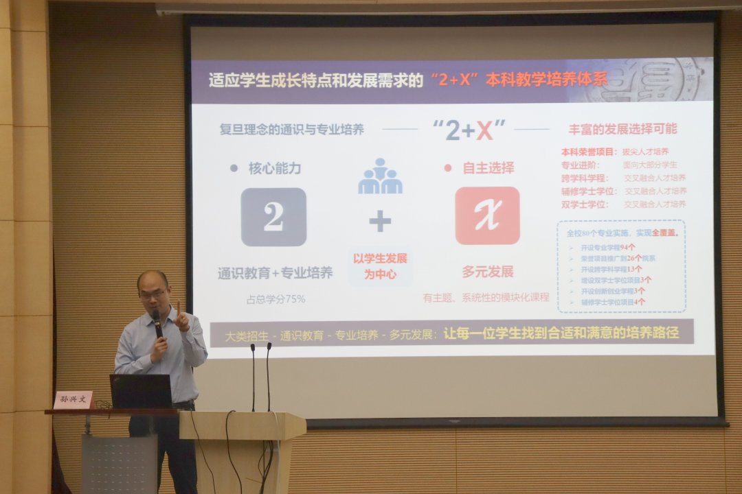 孙兴文教授首先指出,党的二十大报告中明确提出“全面提高人才自主培养质量,着力造就拔尖创新人才”,为此高校在培养理念和培养路径上需要重新思考,探索新的范式。孙兴文教授以本科人才培养面临的挑战为切入点,全面介绍了品色堂 多年来在教学改革创新方面所作的探索和努力,重点解读了为适应学生成长特点和发展需求而实施的“2+X”本科教学培养体系,详细讲解了专业进阶路径、本科荣誉项目、跨学科学程方案等内容。这些举措都是以学生发展为中心,目的是让每一位学生找到合适和满意的培养路径。同时,孙兴文教授提出,拔尖创新人才培养新范式的复旦方案——本科荣誉项目,具有高挑战度、高开放管理、闯关性三大特色,强调优秀是闯出来的,人人皆可成才。最后,结合品色堂 “十四五”课程建设计划,以及《品色堂 教师高级职务聘任实施办法》中本科教学评价的说明,孙兴文教授建议教师们在建设优质课程、打造复旦品牌课程方面下功夫、见成效。