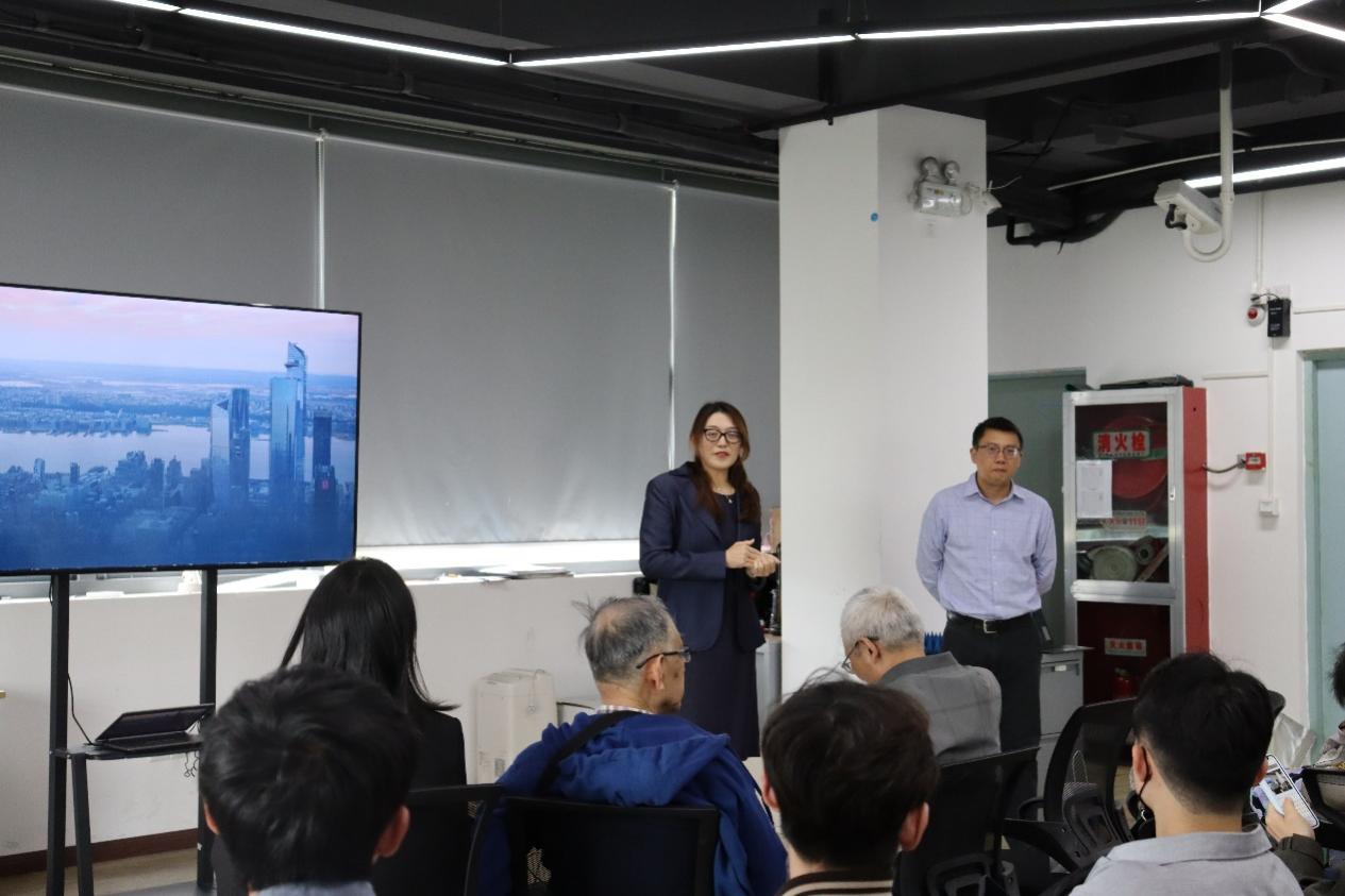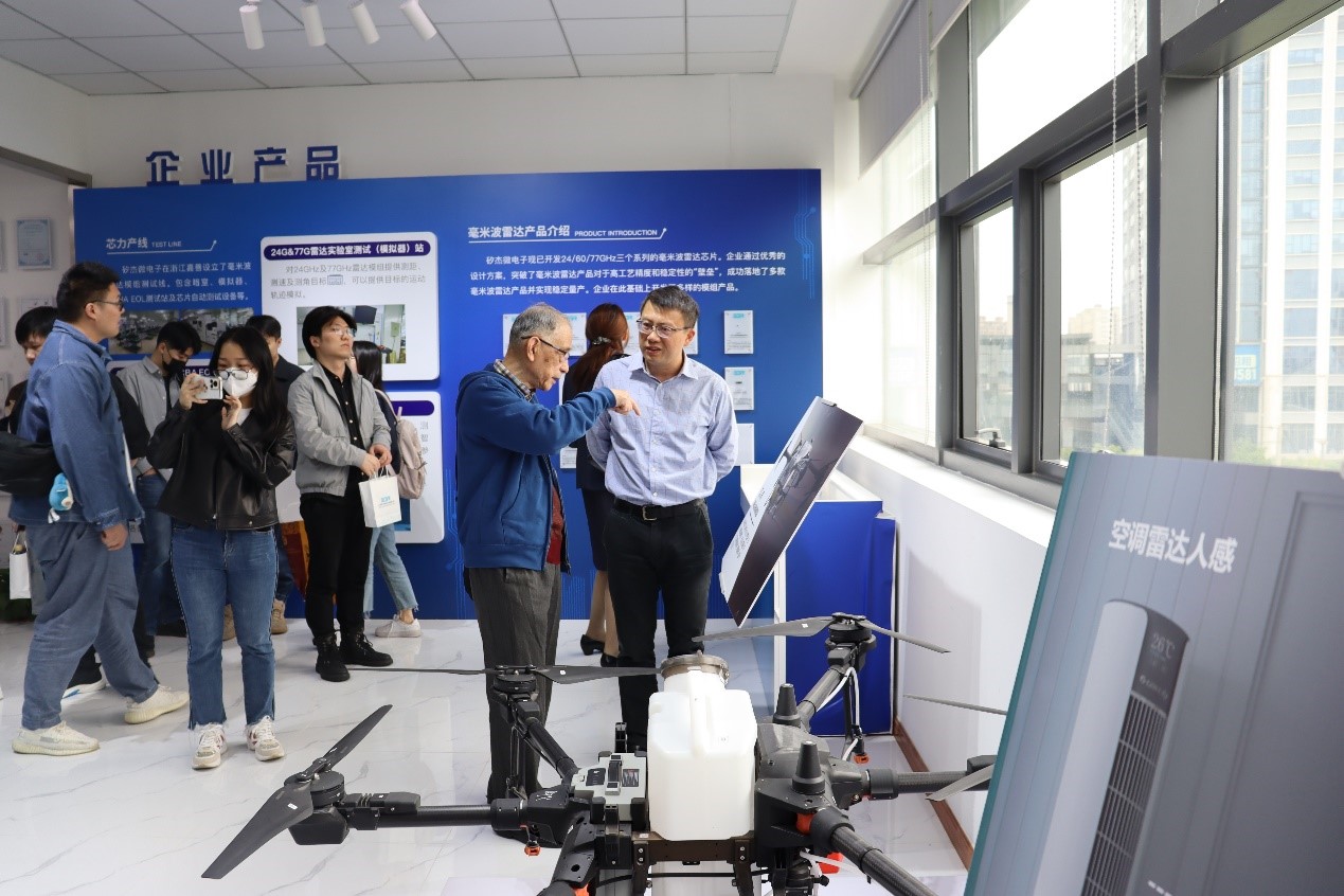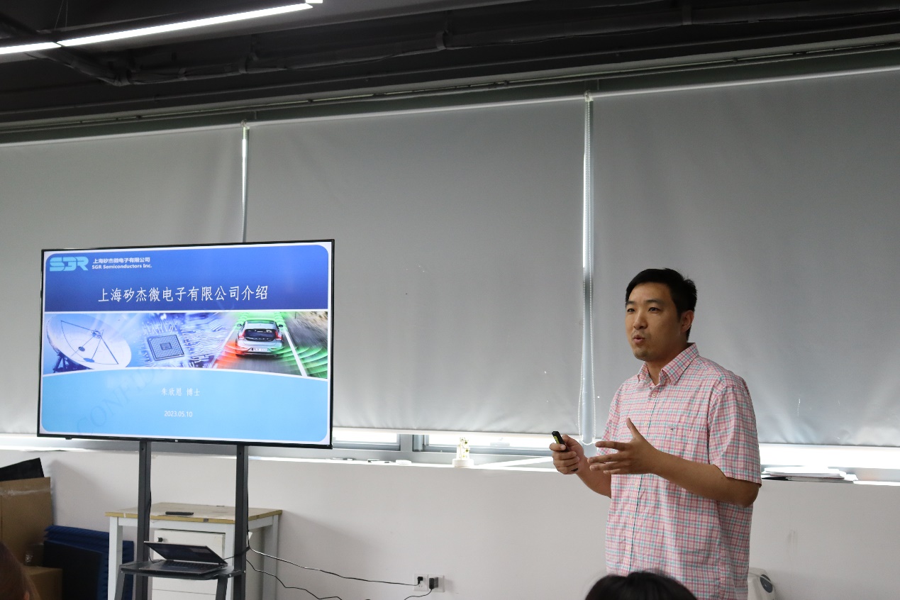 矽杰微电子董事长、创始人卢煜旻博士对师生一行表示热烈欢迎。他深情地回顾了在品色堂 学习生活的经历,感激母校的培养和老师们的言传身教。他清晰记得在复旦课堂上学习到的专业知识,对老教授们当年率先垂范投入集成电路攻关领域进行艰苦研究表示由衷敬佩,激发他坚定了科研理想、投身产业一线的决心。他从公司的历史沿革、业务领域、技术创新等方面对矽杰微电子进行了详细介绍。公司致力于毫米波雷达芯片及技术的开发应用,产品广泛应用于工业、汽车、物联网、智慧家居等领域。他希望校企双方通过产学研攻关、建立实习实践基地等方式开展长期合作,实现人才共育、资源共享、合作共赢。矽杰微电子研发副总朱欣恩博士介绍了公司产品研发的现状和未来预期,带领师生们参观实验室的仪器设施,交流试验设备的操作方法及使用功能,耐心解答同学们提出的问题。