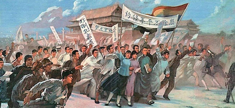1919年5月4日,北京爆发了学生群众的反帝爱国运动。五四运动的直接导火线是中国在巴黎和会上的外交失败。5月4日,北京13所大专学校学生3000余人在天安门集合,示威游行,掀起爱国风暴。北洋军阀政府出动军警,逮捕示威群众32人。5月5日,北京学生总罢课,并通电全国,各地学生纷纷罢课响应。6月3日、4日,北京学生讲演团分赴全市各主要街道演讲,北洋军阀政府再次派出军警、马队进行镇压,逮捕大批爱国学生,更加激起全国各界的义愤。从6月5日起,上海工人举行声援学生的罢工。随后,工人罢工、商人罢市如燎原烈火蔓延全国。6月7日,北洋政府迫于压力,不得不释放被捕学生。6月10日,罢免了亲日派官僚。6月28日,中国代表没有出席巴黎和会的签字仪式。五四运动促进了马克思主义在中国的传播及其与中国工人运动的结合。它是中国革命史上具有划时代意义的事件,标志着中国新民主主义革命的开端。