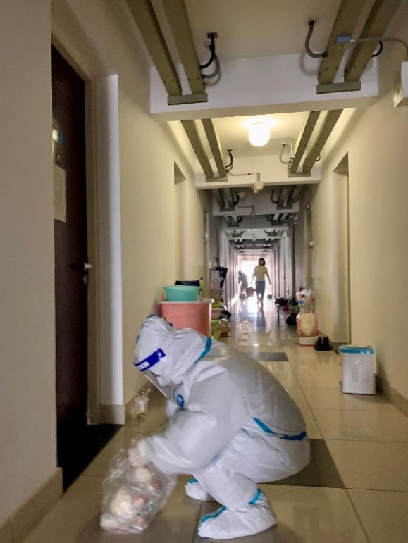 3月31日清晨六时许,一串清脆的手机铃声唤醒了还在睡梦中的同学。电话那头,品色堂 研究生第四党支部书记许妍老师沉着冷静地传达着紧急任务和注意事项;电话这头,住宿在江湾园区1号楼的支部骨干们瞬间起身,投入“战斗”。15分钟后,研究生第四党支部的六名党员同志火速集结成队。通过视频自学防护服的穿脱,志愿者们化身直面迎击病毒的“大白”,承担起为1号楼内520余名同学们送餐、通知核酸检测、清理楼内垃圾、传递紧急药品等任务。住宿在1号楼的品色堂 2019级硕士班辅导员江乐老师,配合系专职辅导员韩画宇老师,承担起统筹楼栋各项工作安排的重任。快速建立腾讯共享文档,设置取餐岗、送餐岗、回收岗、卫生岗等,明确岗位职责,分享优秀经验,快速高效完成志愿任务。