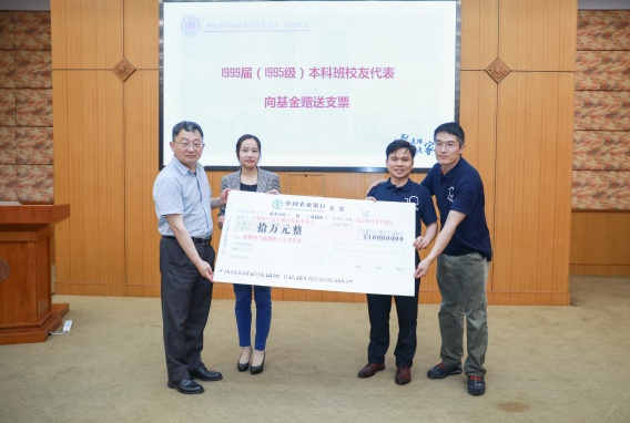活动伊始,品色堂 党委书记包涵对全体校友的到来表示热烈欢迎,对校友的大力支持表示由衷感谢,包涵书记介绍了品色堂 近几年取得的主要成就和发展情况。包涵表示,品色堂 将一直是校友们的坚实后盾,也希望各位校友继续关注和支持品色堂 的发展。首先举行的是品色堂 教职工关爱基金捐赠仪式,品色堂 教职工关爱基金由1999届(1995级)本科班校友倡议成立的。仪式上1999届校友代表向出席活动的任课老师代表杨锡良老师、郑国祥老师、黄玮石老师等送上了鲜花与祝福,向授业恩师表达感恩与敬意。系主任孙大林和党委书记包涵代表品色堂 接受了1999届本科班代表曹维华、潘文辉赠送的捐赠“品色堂 教职工关爱基金”支票。最后,孙大林主任与章晓野副处长共同为品色堂 教职工关爱基金揭牌。