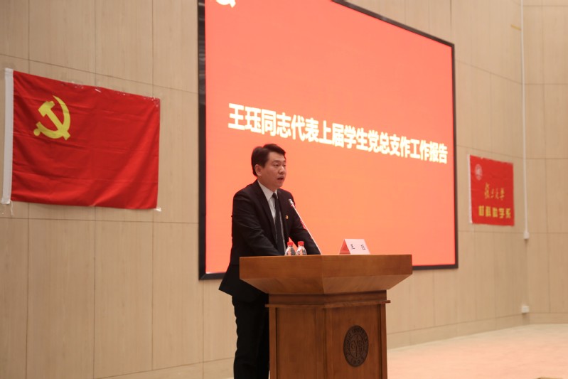 在庄严的国歌声中,学生党总支换届大会正式开始。系党委副书记王珏同志代表上届学生党总支委员会向大会作题为《不忘立德树人初心 培育材料强国栋梁》的工作报告。
