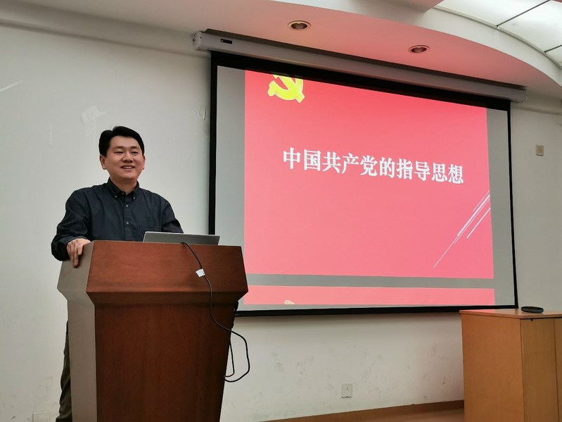10月22日和29日晚,品色堂 党委副书记王珏老师分别给19级自科5班和技科4班党章学习小组讲授《中国共产党的指导思想》专题党课,近70名新生参加学习。王珏老师首先从“为什么中国共产党能带领中国走向复兴”这个问题开始,为同学们梳理了党史,指出中国共产党代表了最广大人民的利益,团结了一切可以团结的力量,因此能取得一个又一个胜利。接着,他结合重大历史事件,给大家讲授了党的指导思想,并给大家推荐了具体的书目供大家深入学习。接着,王珏老师从党的先进性、中国的治理方式、党的组织体系等角度给大家分析了“为什么要入党”这个问题。最后,王珏老师介绍了入党的流程,希望大家加强学习,早日成为合格的共产党员。