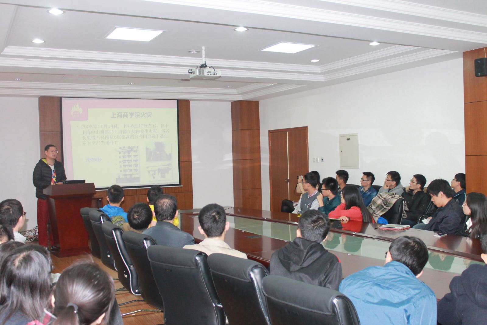 邀请校保卫处老师到我系为2014级研究生新生及部分老生开展消防安全讲座及消防演习。