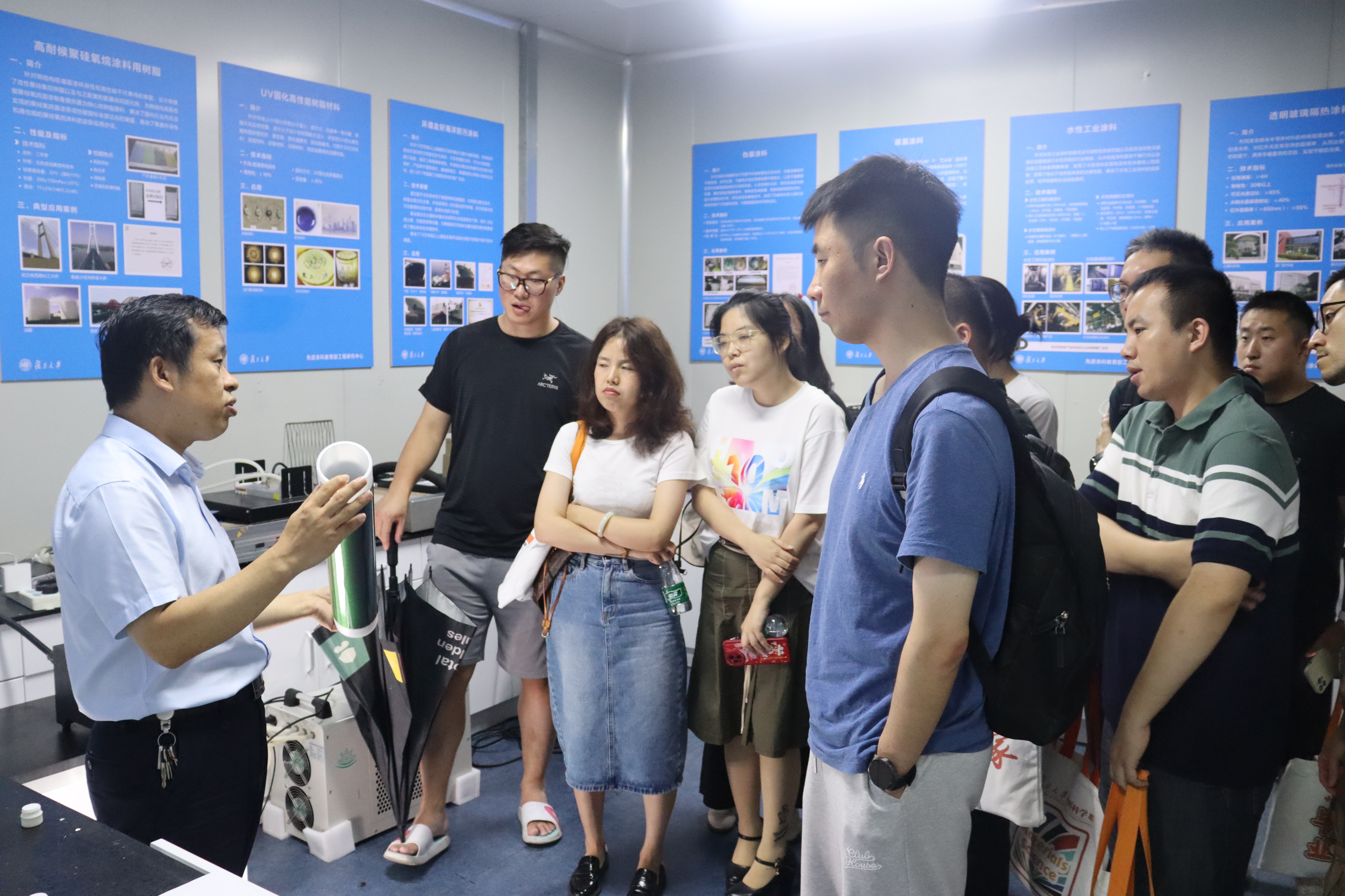 座谈之后,品色堂 周树学老师和宋云老师带领系友们参观了教育部先进涂料工程研究中心和储能材料实验室。周树学老师重点介绍了目前先进涂料的研究进展,特别是在国产大飞机以及祝融号火星车上的应用,宋云老师则展示了能源材料当下的研究方向。系友们均表示对于系里科技创新取得的新成绩感到非常自豪,同时也感叹现在材料科学前沿发展的日新月异。