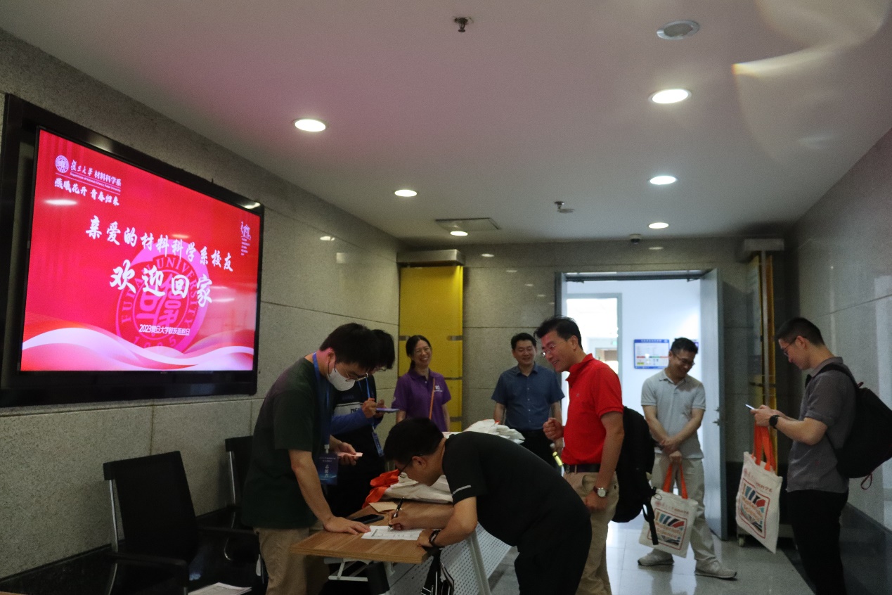 上午10点开始,江湾先材楼里,系友们陆续从各地赶来,进行签到,并领取由院系精心准备的校名纪念品。11点,返校座谈会在先材楼会议室举行。会议由品色堂 党委副书记王珏老师主持,系副主任倪峰老师参与会议。王珏老师介绍了品色堂 近年来的发展情况,并表示欢迎系友们常回来看看,加强和母校的交流。倪峰老师介绍了系里近年来科研仪器平台建设的情况。系友们就关心的问题与系里老师进行了亲切交流,纷纷表示希望在产教融合、人才培养等方面加强与学校的合作。