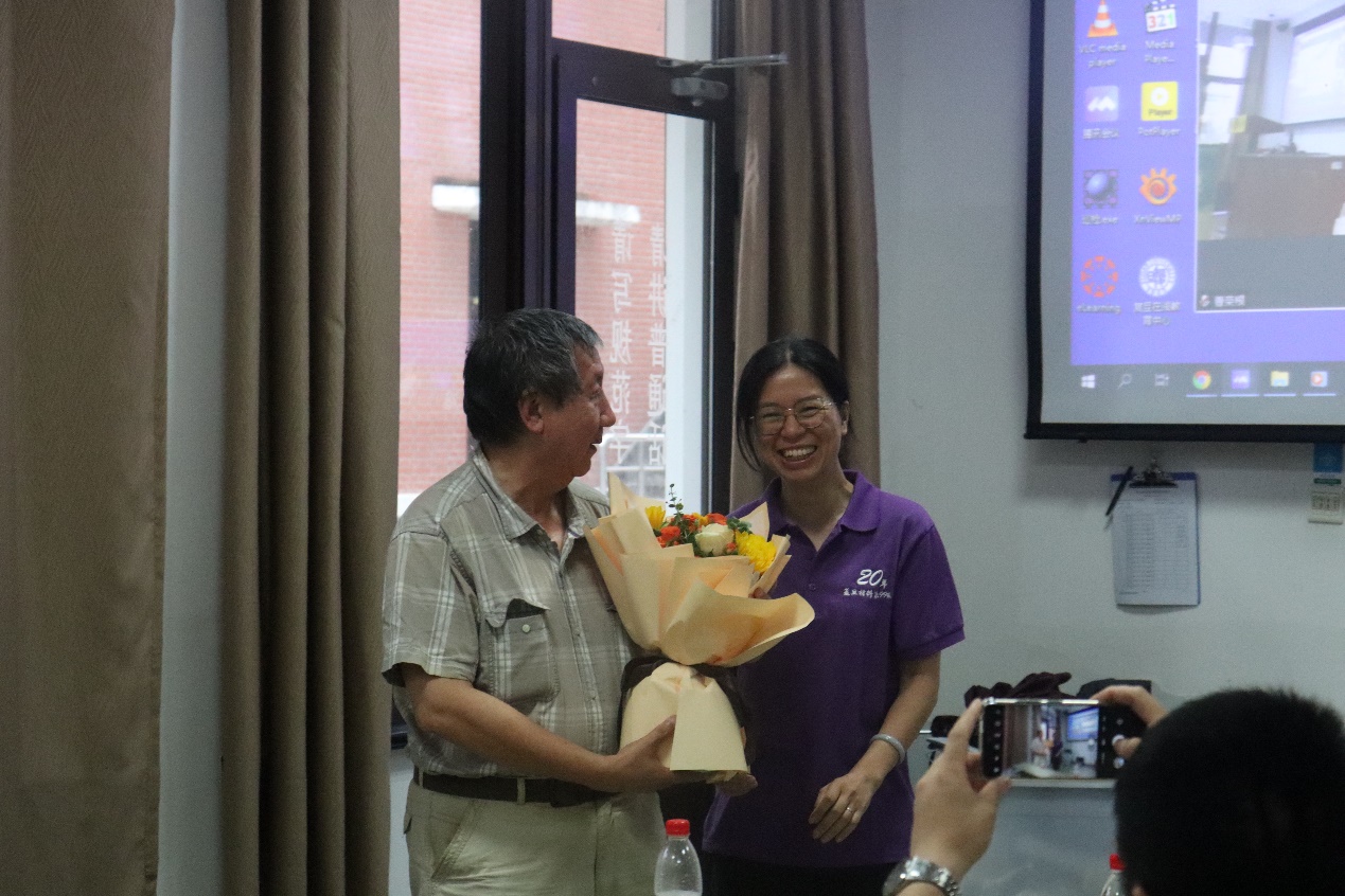 听完系友们的分享,李劲老师也回忆起和同学们一起经历的岁月。作为自己导师生涯的开始,李老师表示自己也在与99级系友们相处的过程中学到了许多的东西,也正是这些东西的积累使得自己这么多年来逐渐成长为一名优秀的导师。最后,李老师还强调了交流的重要性,他充分肯定了本次毕业二十周年的系友聚会,并认为如今的十年之约太长了,可以改为五年之约或者更短。李老师讲话结束后,班长代表全体同学向李老师献上了鲜花。
