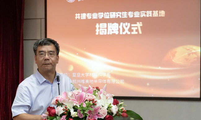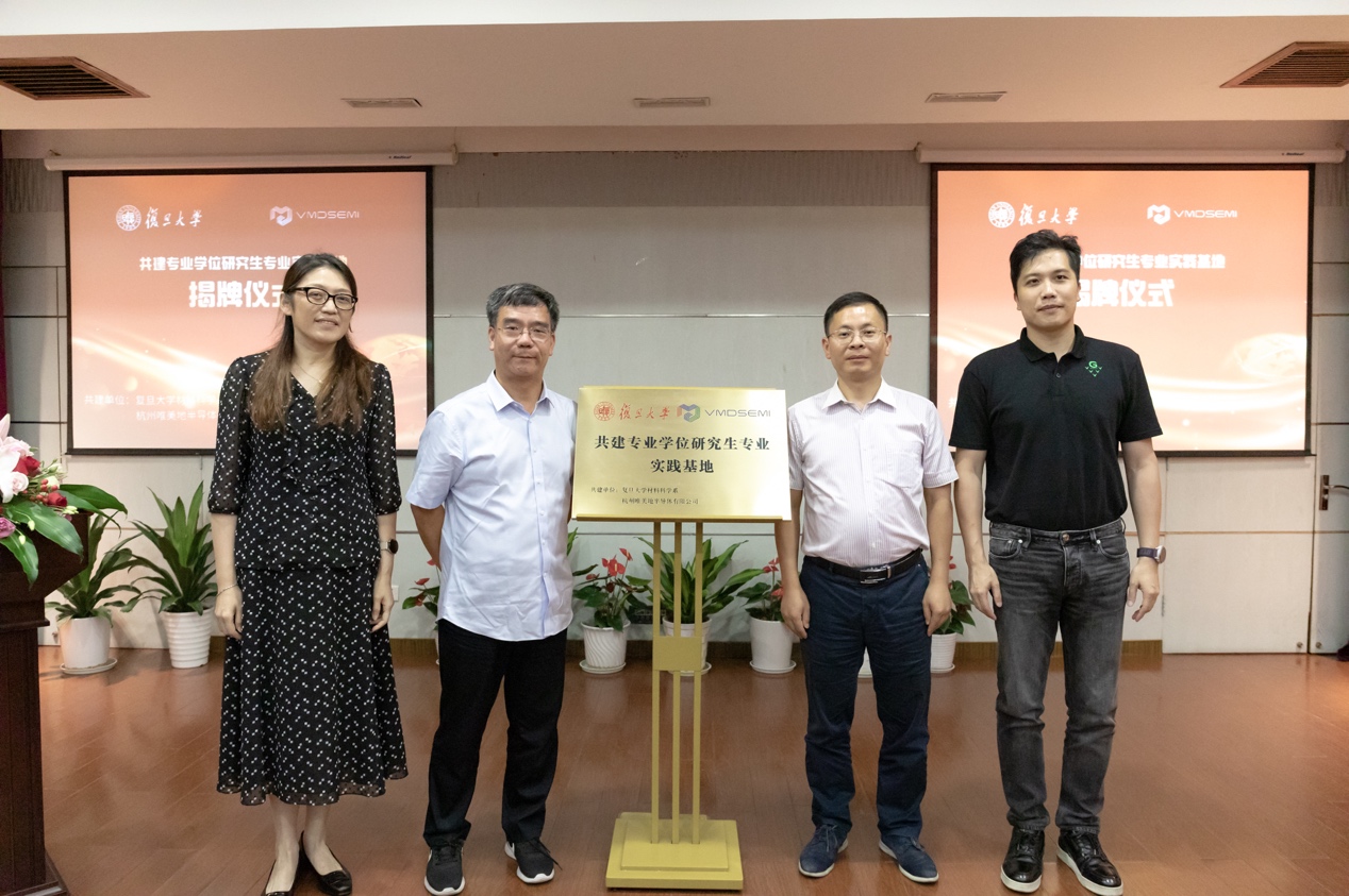 在各方见证下,系党委书记于瀛、系副主任蒋益明、杭州紫金港科技城管委会党委书记沈瑜维以及唯美地半导体有限公司董事长张帅一起为“专业学位研究生专业实践基地”揭牌,宣布共建基地正式落成。