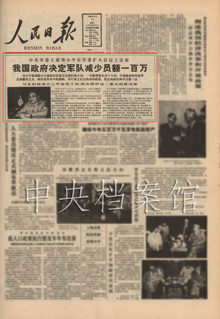 1985年5月23日,中央军委召开扩大会议。邓小平在会上宣布:中国人民解放军减少员额100万。会议作出军队建设指导思想实行战略性转变的重大决策。