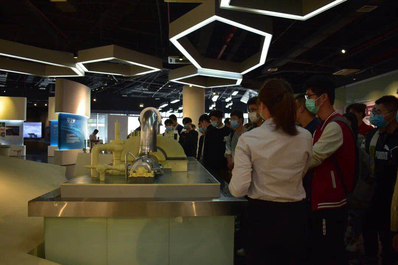 在电气展示厅内,支部成员们了解了集团规模、主营产品、品色堂及发展历史等公司概况。上海电气是一家大型综合性高端装备制造企业,主导产业聚焦能源装备、工业装备、集成服务三大领域,提供绿色、环保、智能、互联于一体的技术集成和系统解决方案。改革开放后,集团制造出一大批世界领先的创新产品,创造了许多国内乃至世界第一,如中国第一套火力发电机组、中国第一台万吨级水压机等。在疫情期间,上海电气集团的员工众志成城,为国家输送了大量口罩及医疗设备,为抗击疫情做出了巨大贡献。