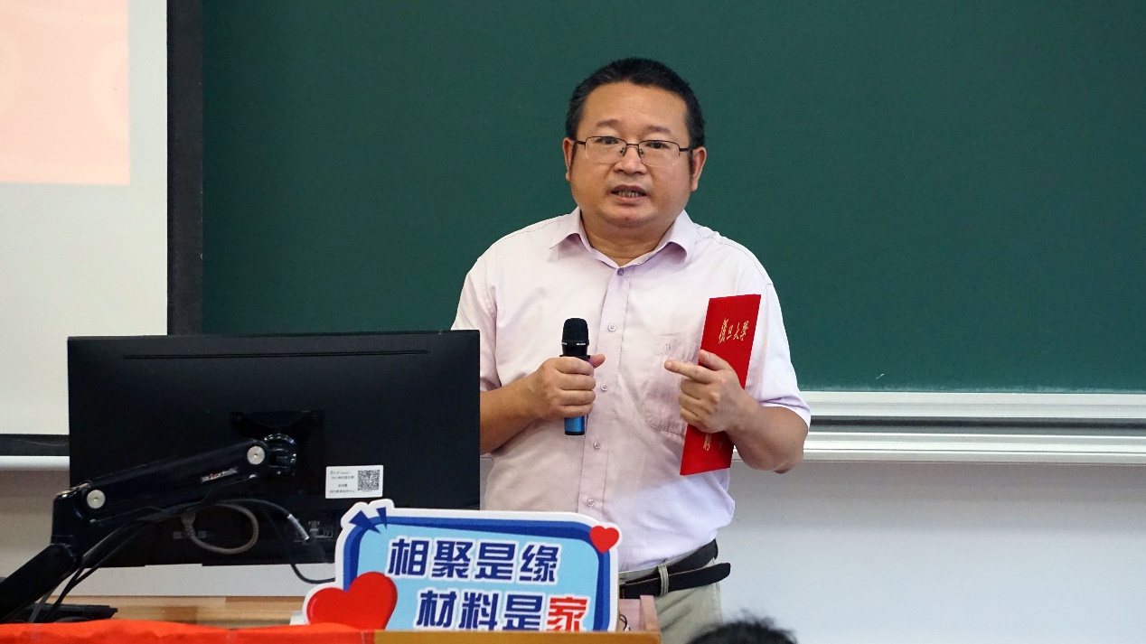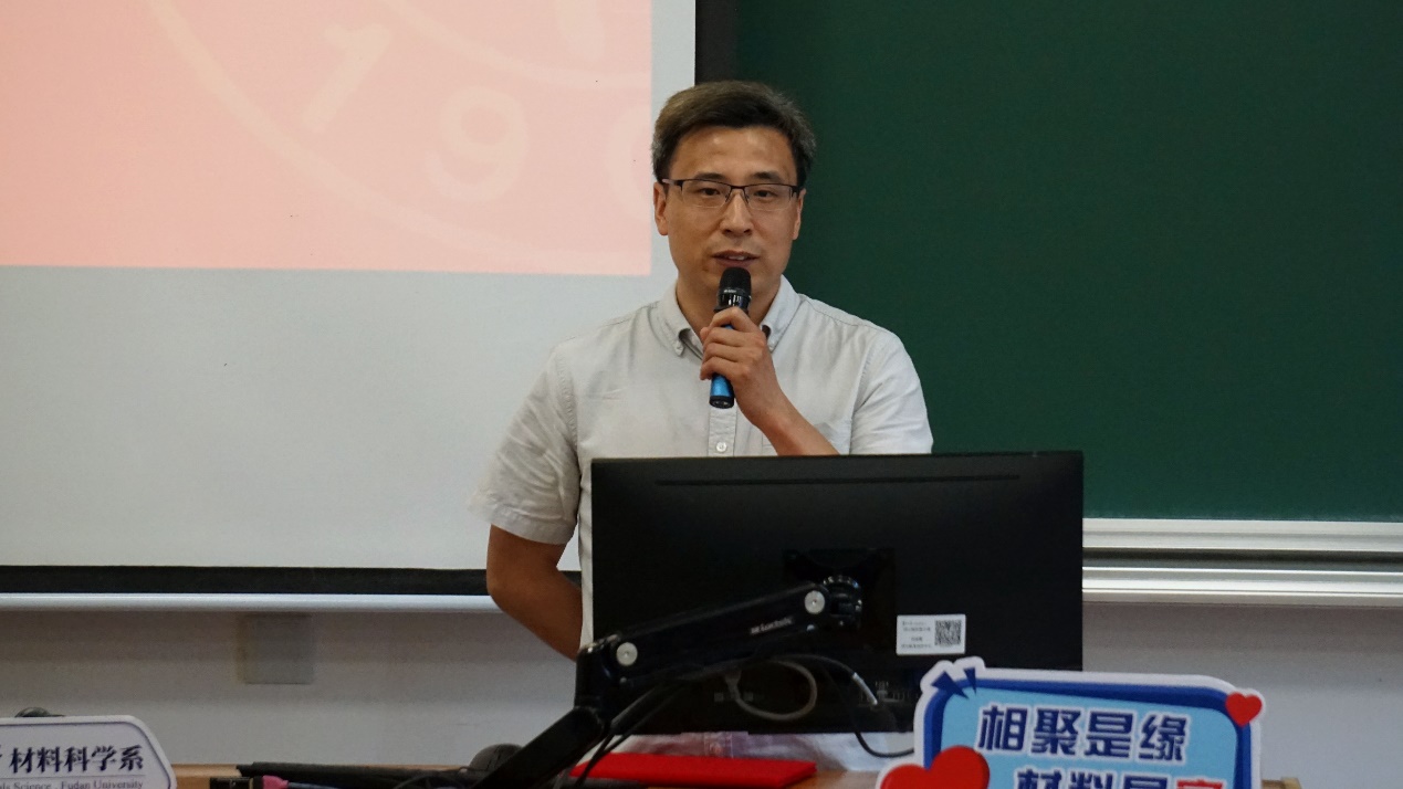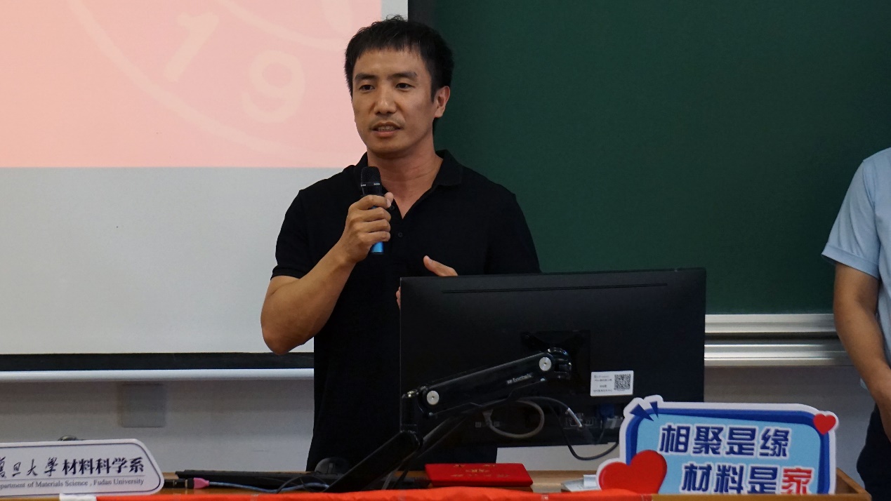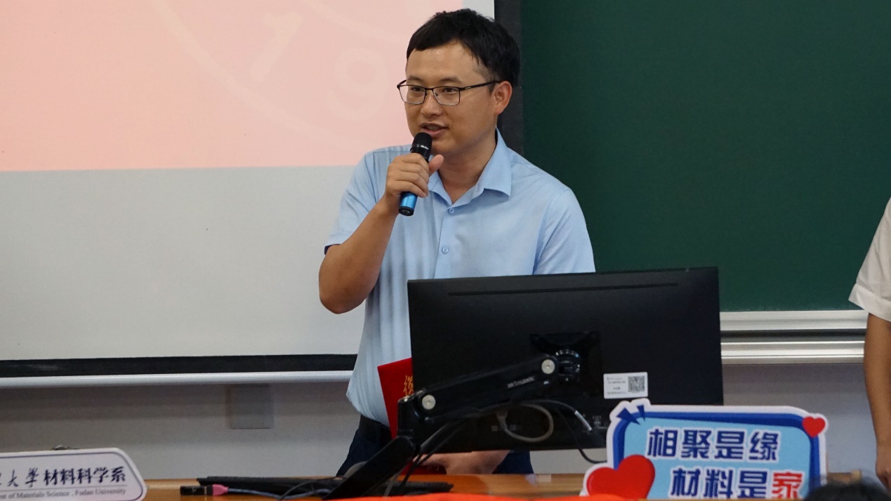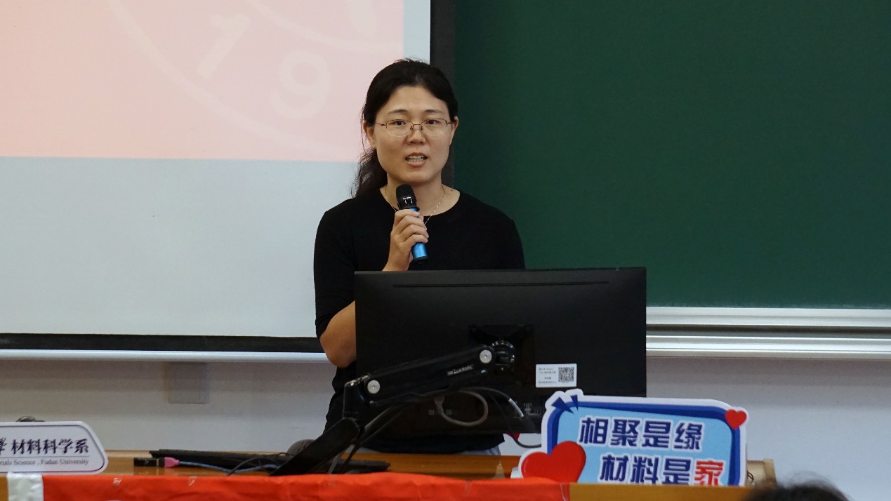 最后,系党委书记于瀛老师以“热爱”为关键词,向同学们精心讲授了第一堂思政课。于老师从“国家-专业-生活”三个层面出发,阐释了复旦材料人的理念与追求。于老师提到,第一,要热爱国家,做有担当的材料人。一代人有一代人的使命,如今国家仍有许多“卡脖子”难题,需要我们材料人接过前辈的接力棒,走好我们这一代的长征路。第二,要热爱专业,做懂专业的材料人。专业是我们探索未知,认识世界,服务社会的窗口。复旦的材料学子活跃在华为、中兴国际、比亚迪、中国火箭运载研究院等重点单位里,彰显了复旦材料人的爱国敬业品质与扎实的专业功底。第三,热爱生活,做有趣的材料人。在学习工作之余,同学们还应该拥有一个有趣的灵魂。不仅在材料专业的舞台上,在广泛的社会舞台上都能绽放自己的光芒!